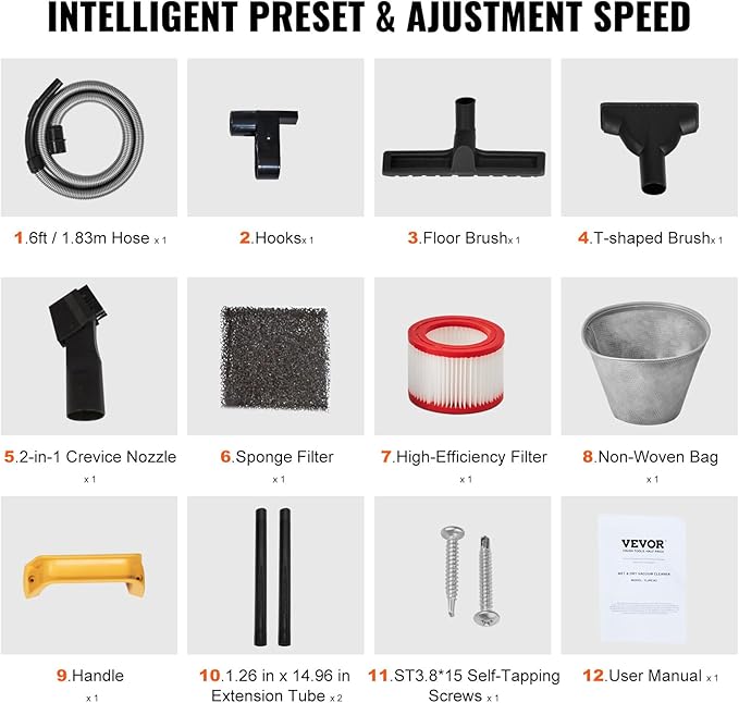 VEVOR Stainless Steel Shop Vac Wet and Dry Vacuum Cleaner 5.5 Gallon 6 Peak HP - Powerful Suction with Blower Function & Attachments 2-in-1 Crevice Nozzle - Perfect for Car Carpet Debris Pet Hair -