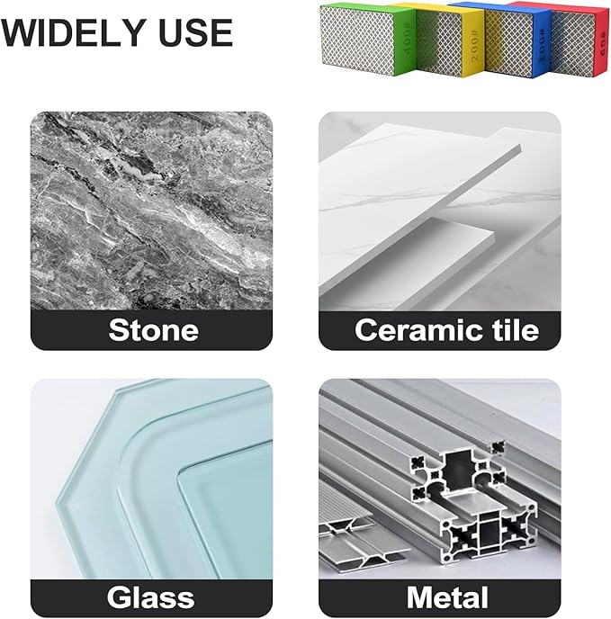 • 【Widely Use】Can be used in both dry and wet polishing. The sponge backing is absorbent. Work greatly for glass working, wood deburring, metal dedusting, stone polishing, tile, granite, ceramics, and other polishing. Easily and quickly solve the problems such as chipping, burrs, and edging in your life.