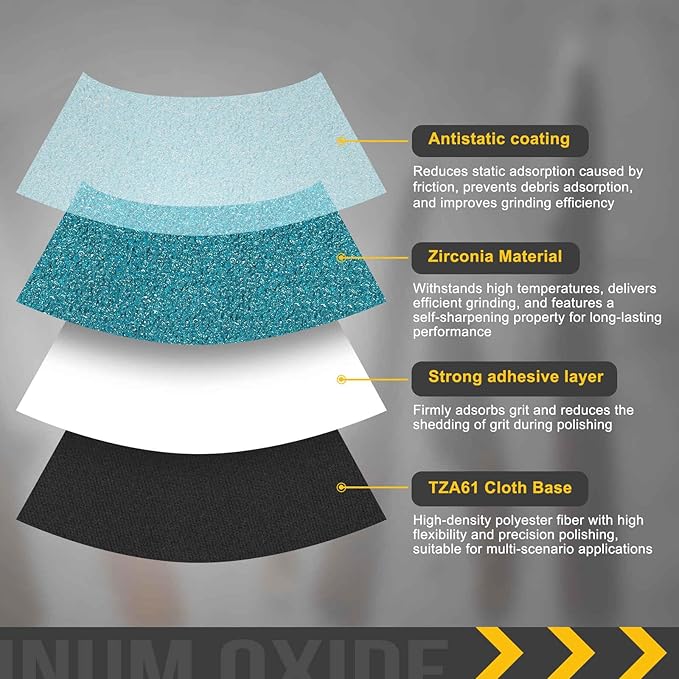 • ★Firm and Stable Joint: The abrasive belt features a precision-butted joint, allowing for bidirectional installation. This joint is highly robust and fracture-resistant, capable of withstanding high-speed operation.